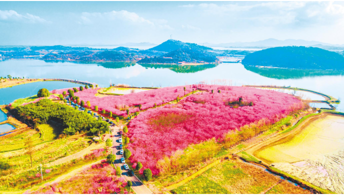 坐落在肖四海湖畔的梅花坞景区(通讯员 何景星 摄)