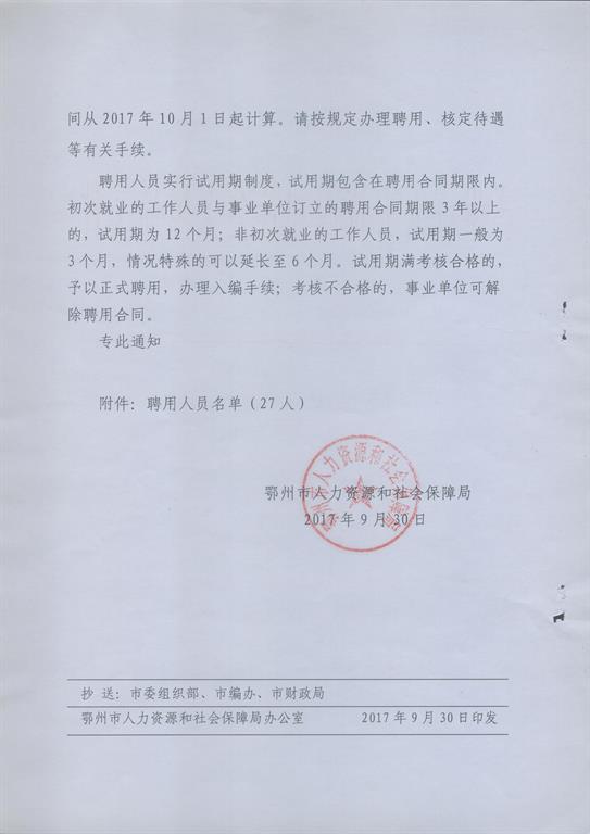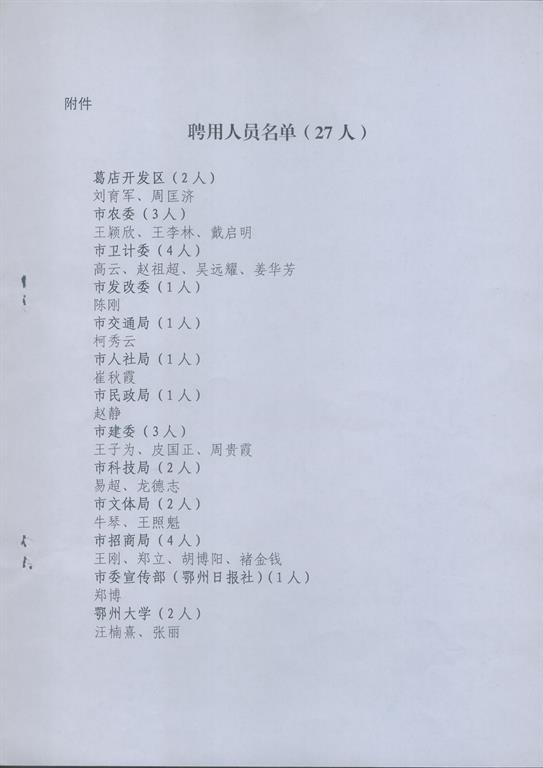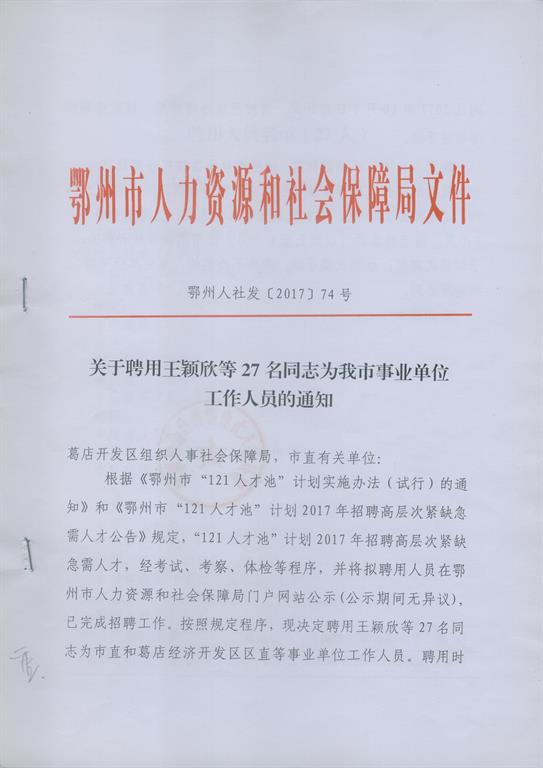 关于聘用王颖欣等27名同志为我市事业单位工作人员的通知